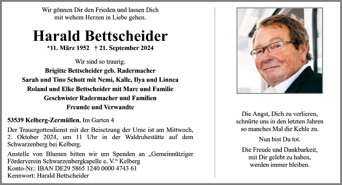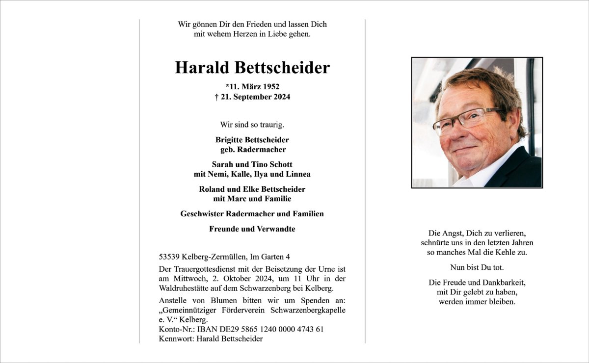 Lieber Harald, oder wie ich dich nannte, Herr Bettscheider,